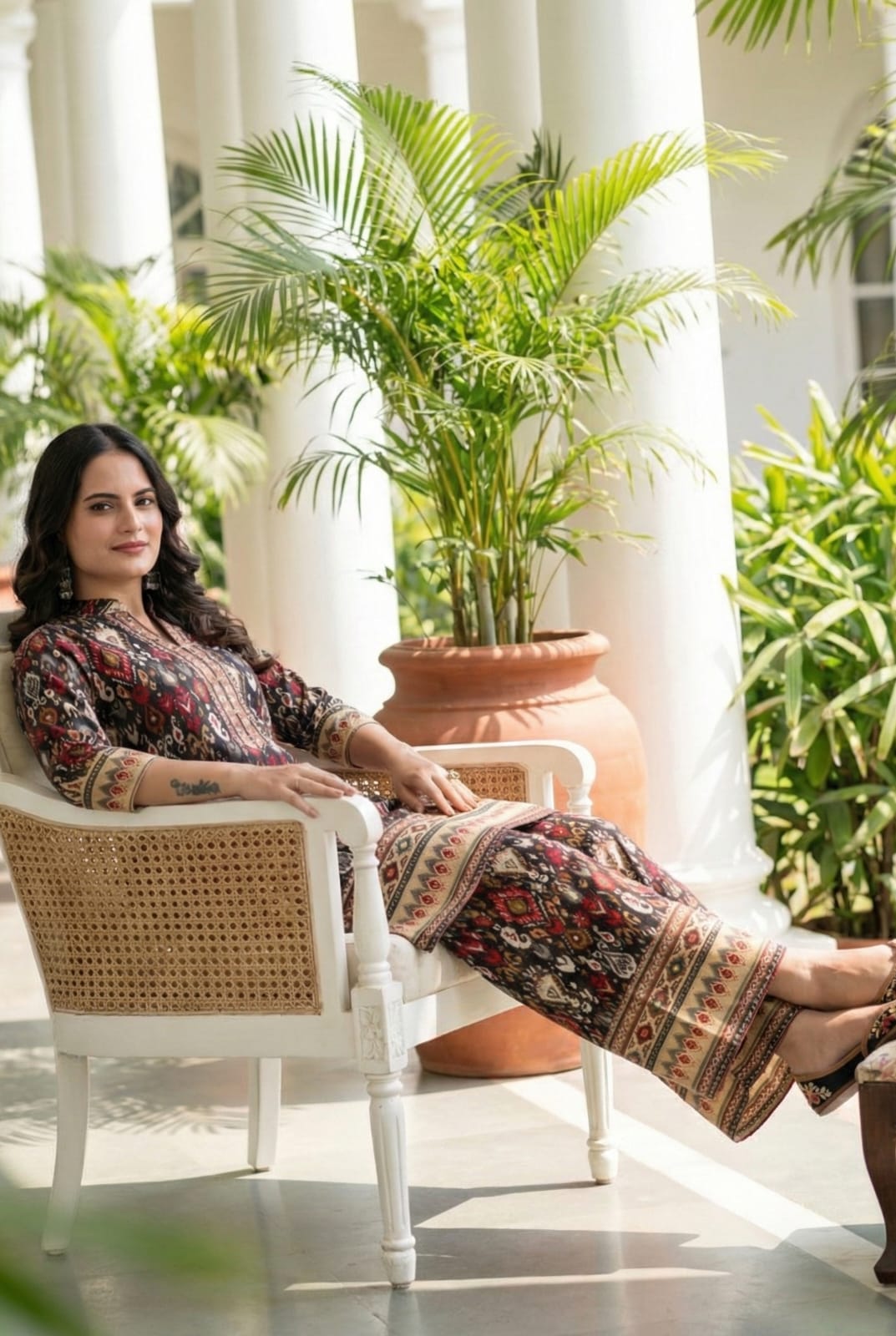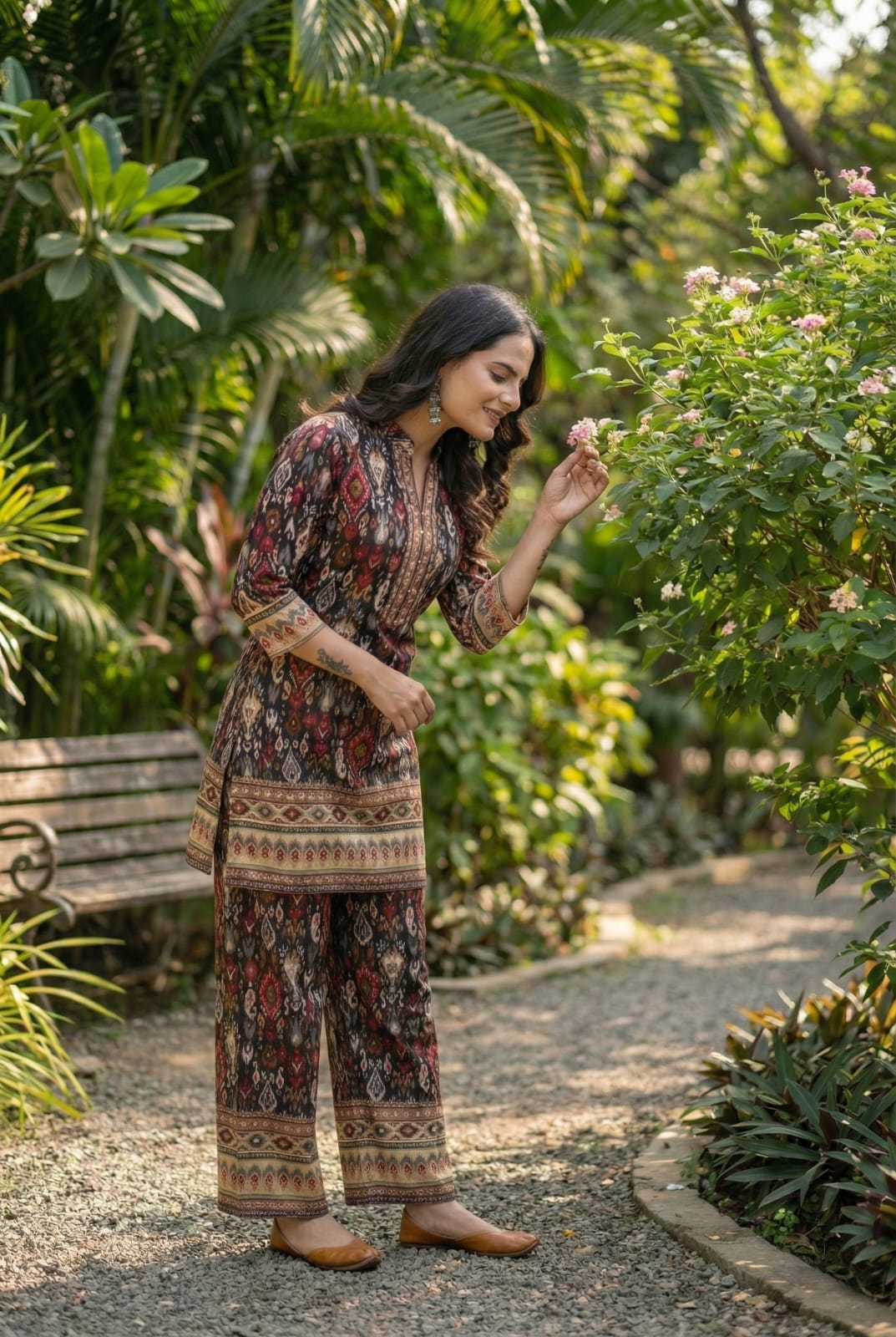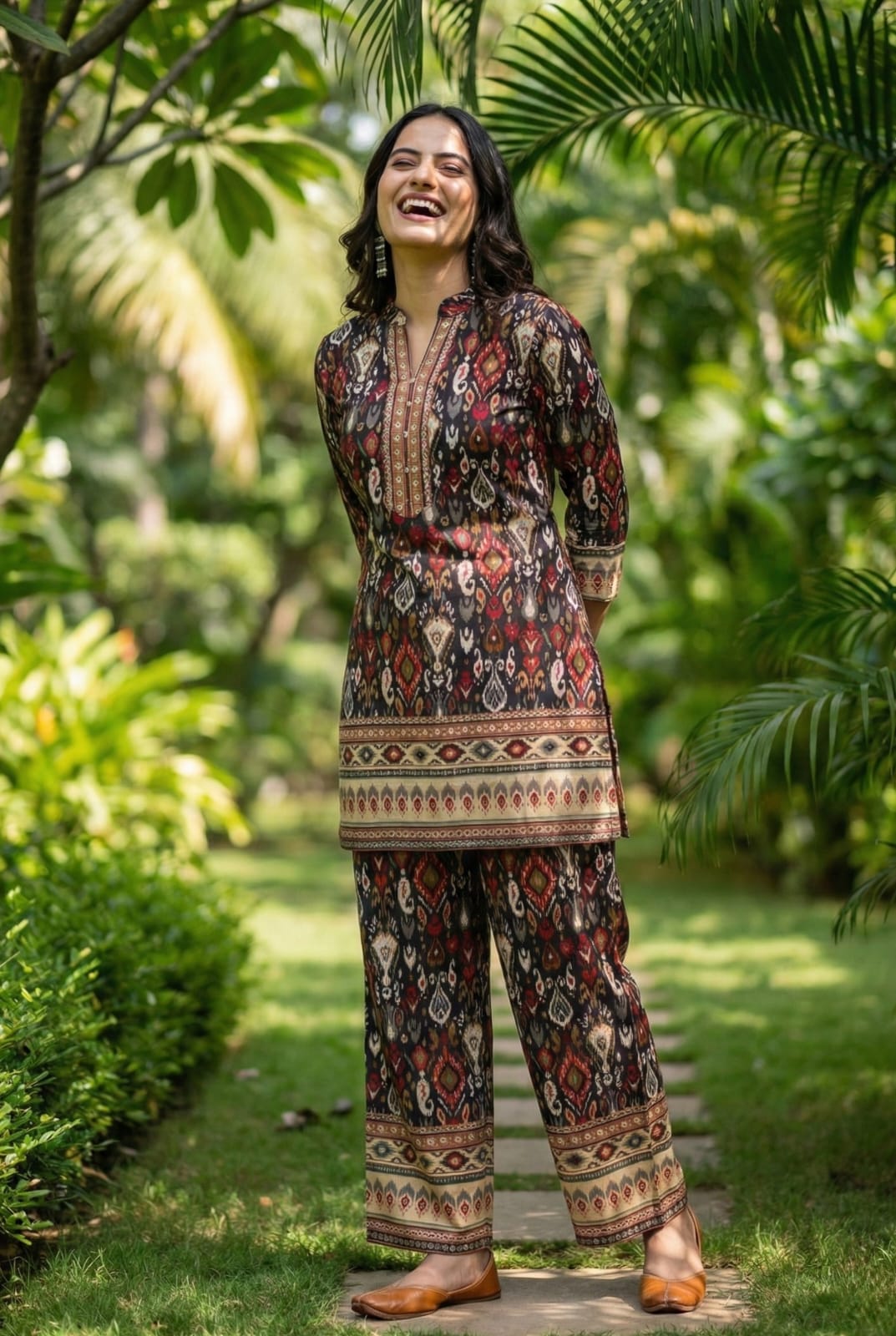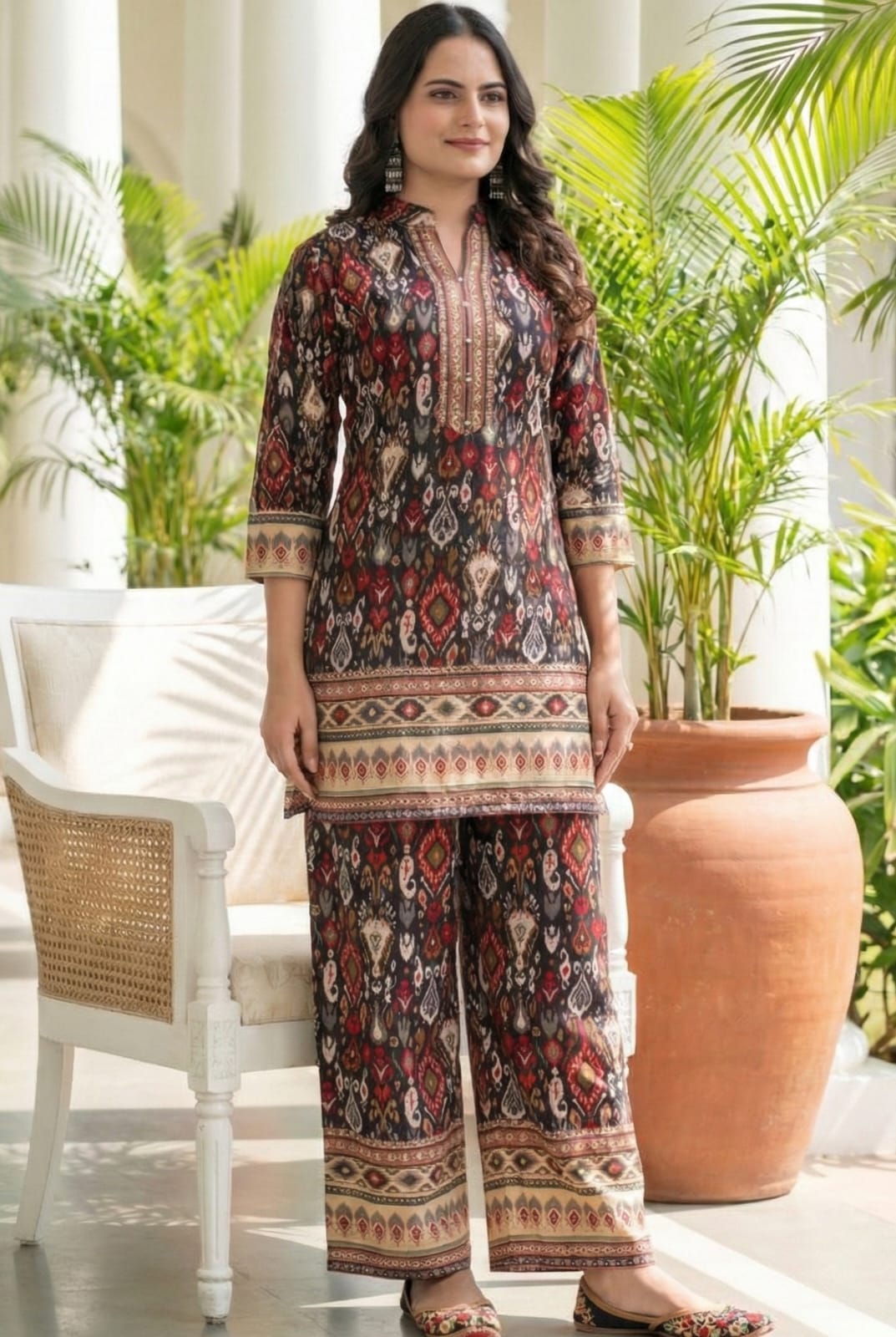 Floral Multi Geometric Printed Co-ords Set with Coat.