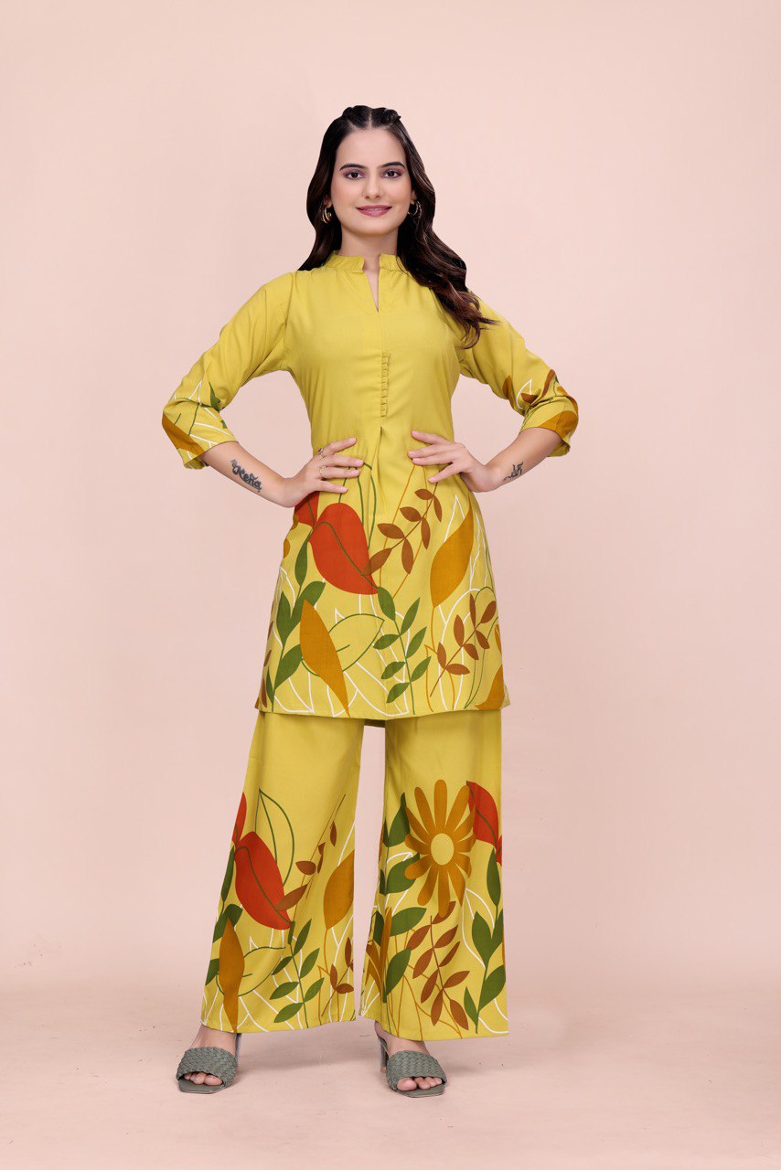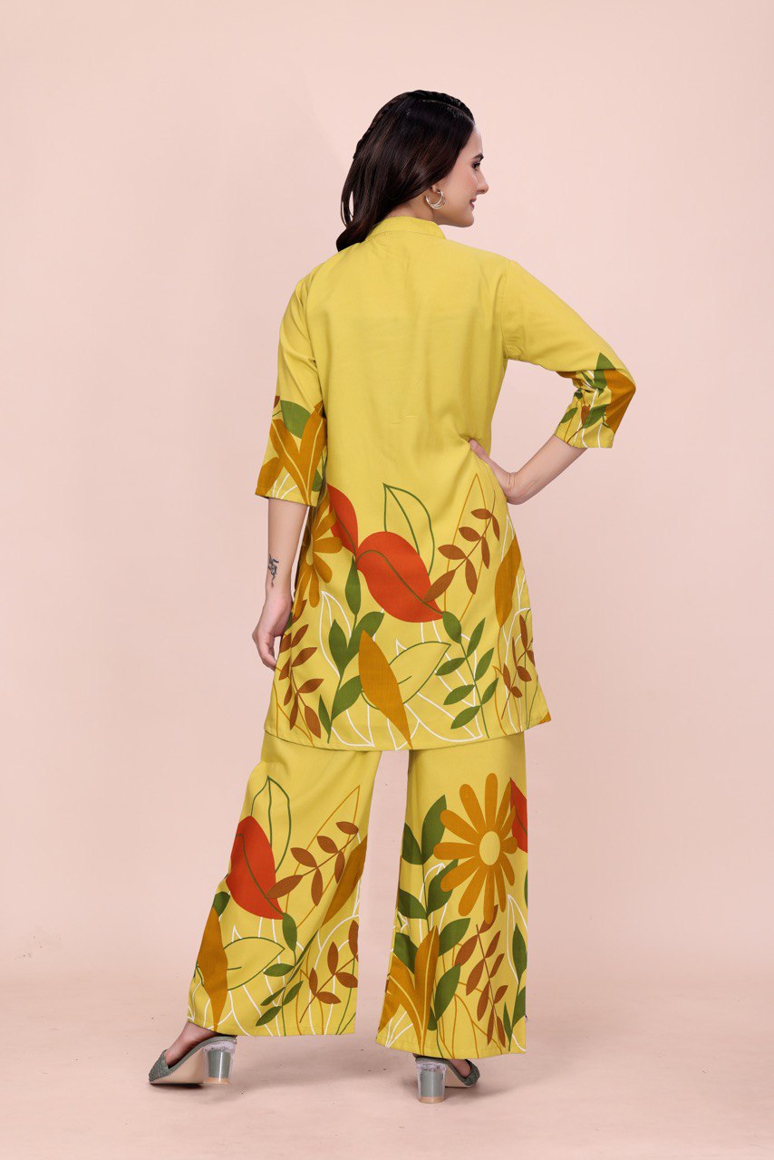 Rustic Floral Printed attraction V-Neck Kurti and Pajama