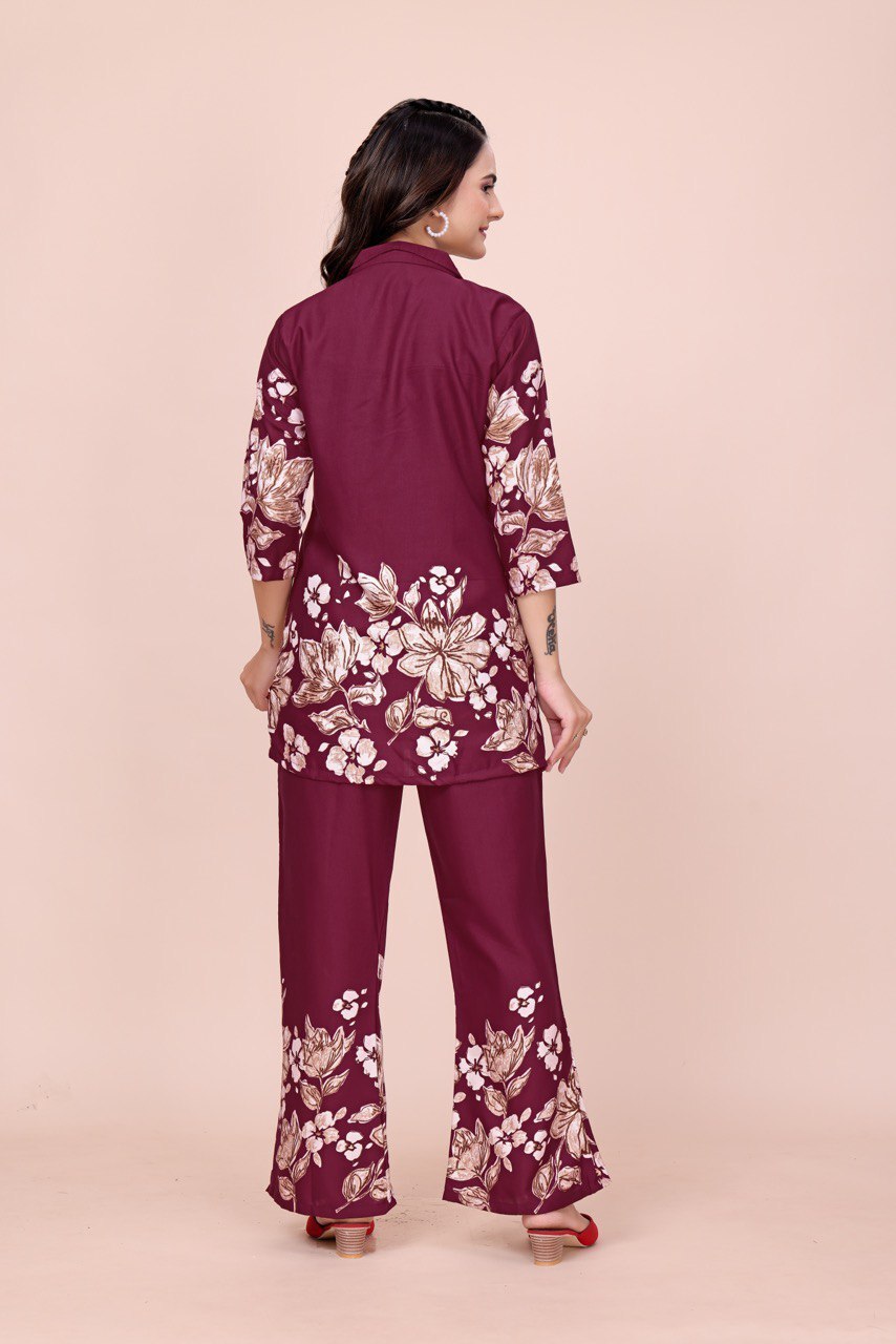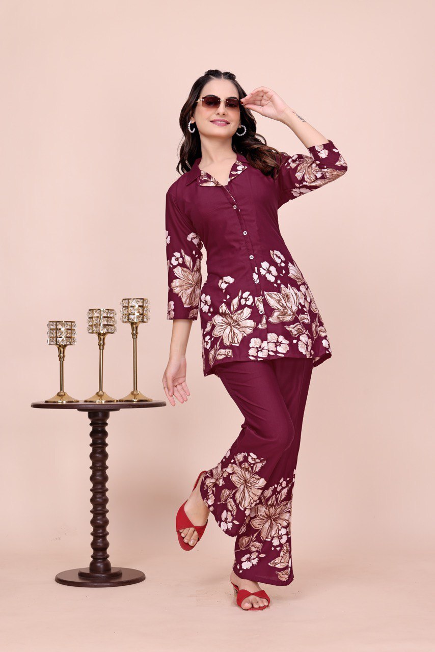 Wine Cotton Printed Cot suit