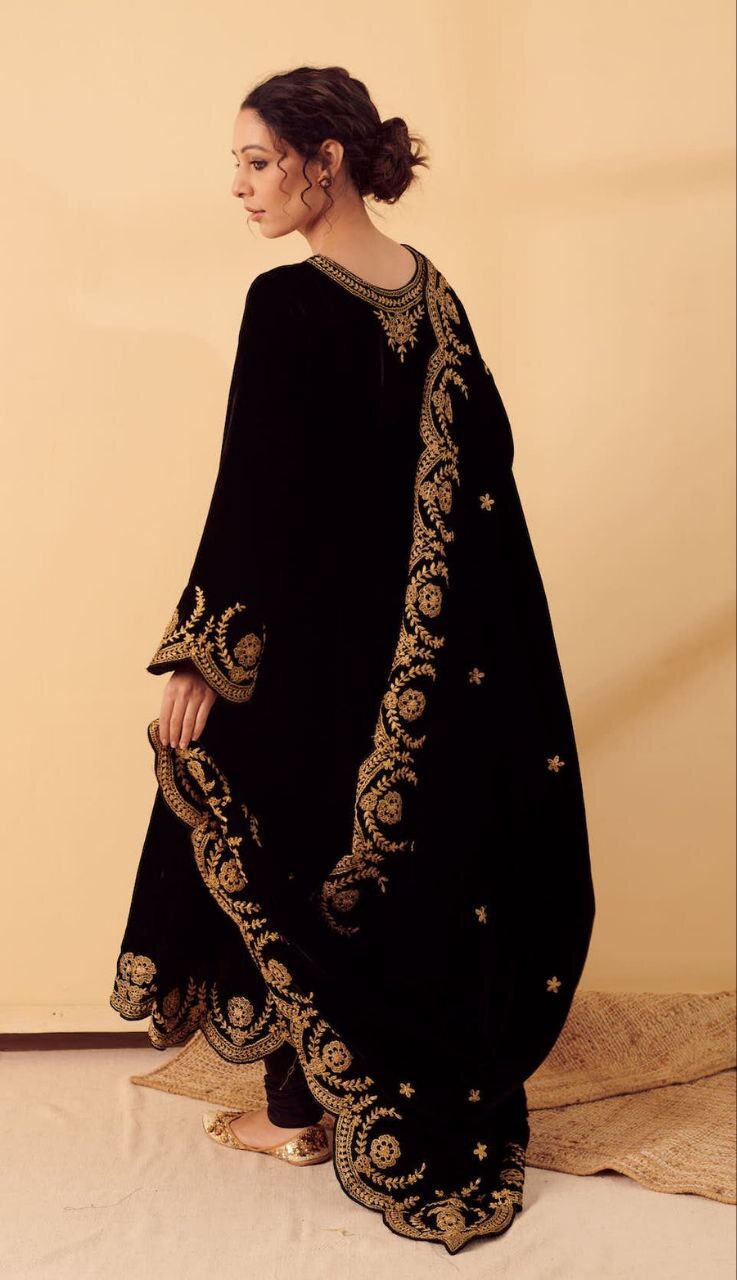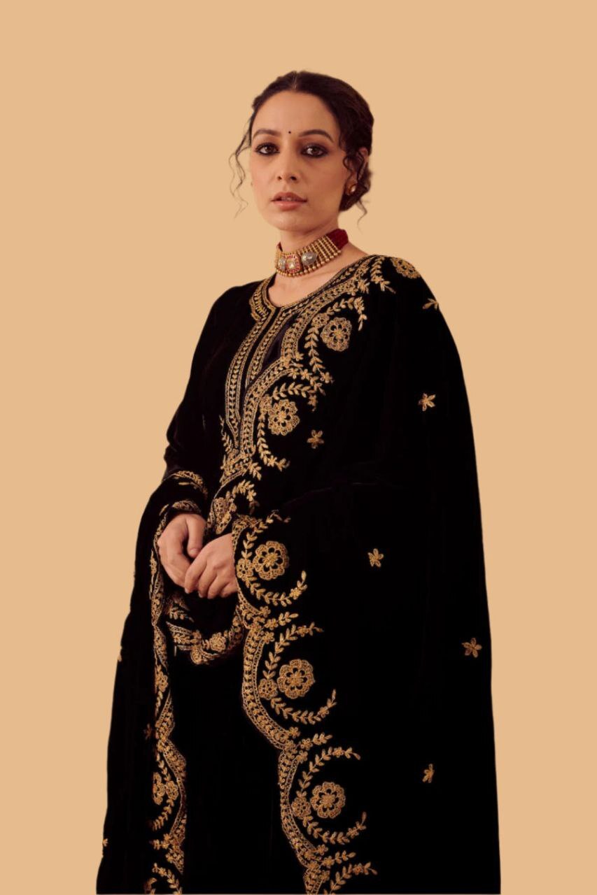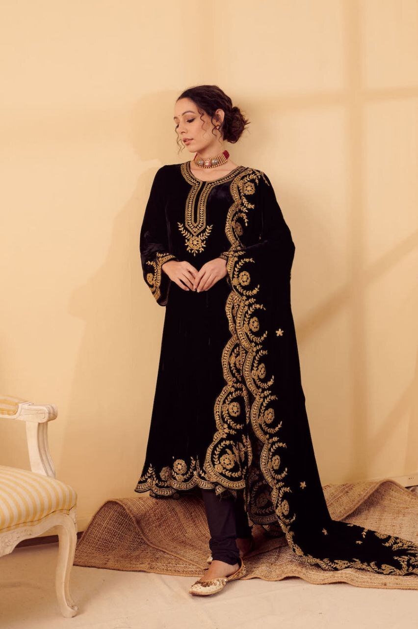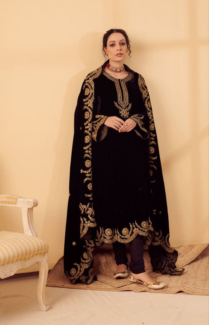 | Fabric Used | Kurti - Silk Velvet lined with mul , churidar – Lycra |