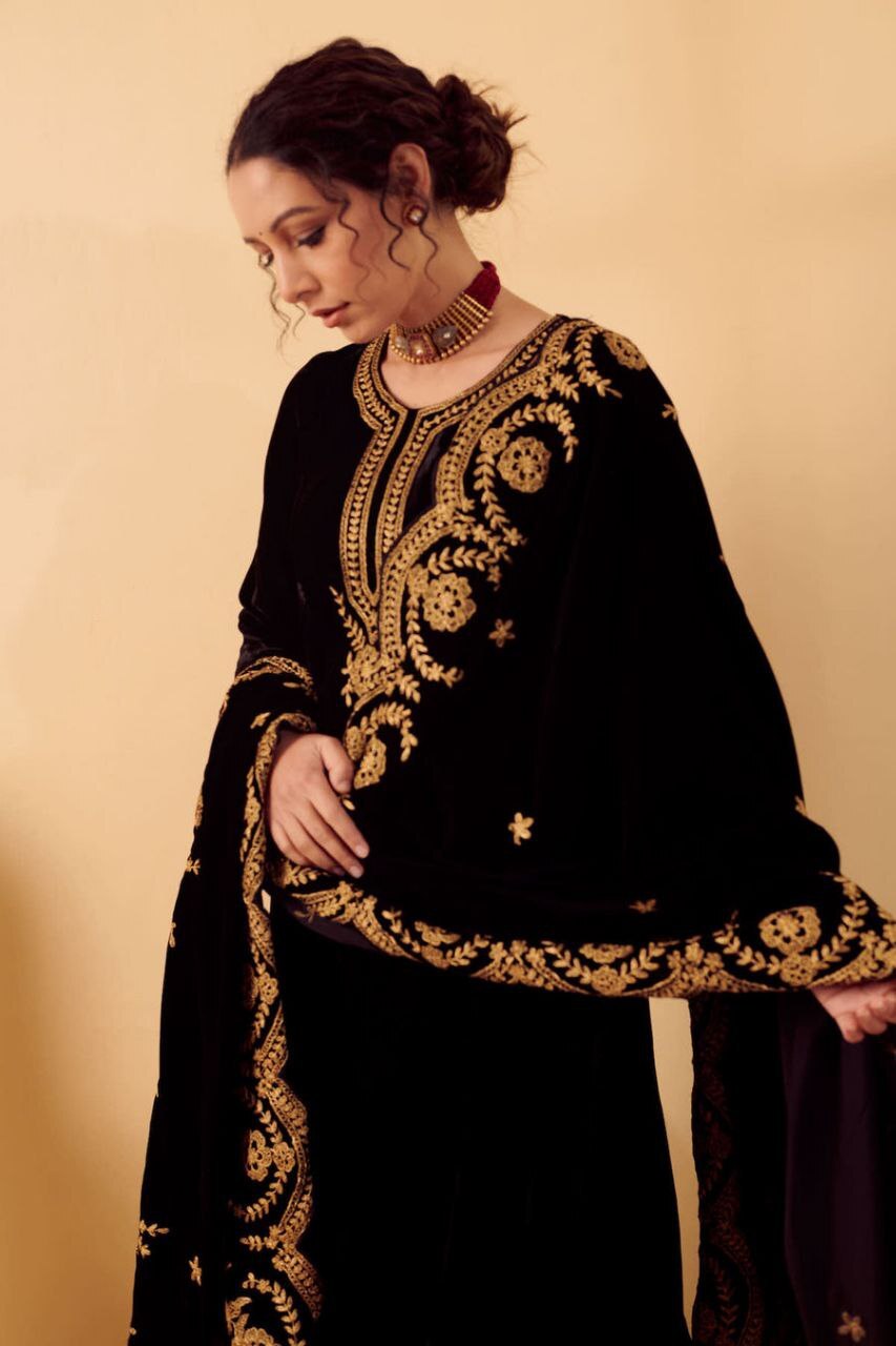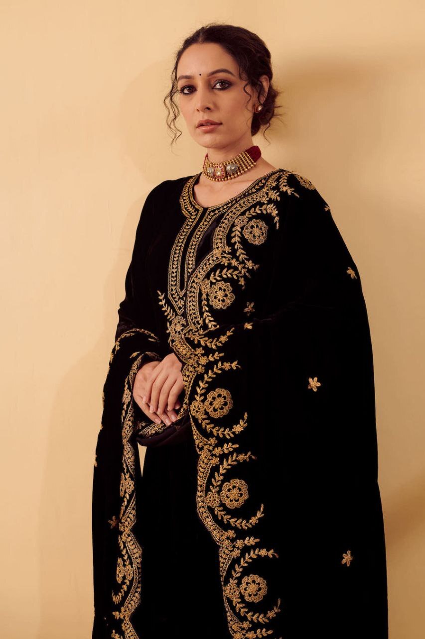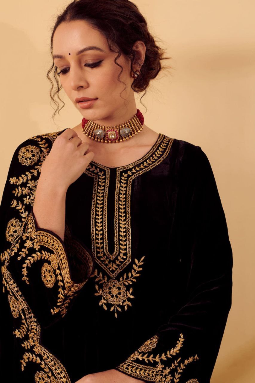 | Fabric Used | Kurti - Silk Velvet lined with mul , churidar – Lycra |