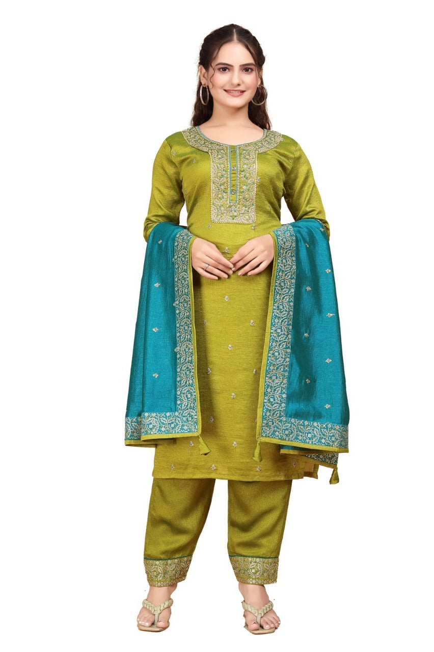 Green Embroidered Kurti with Salwar & Dupatta 3-piece