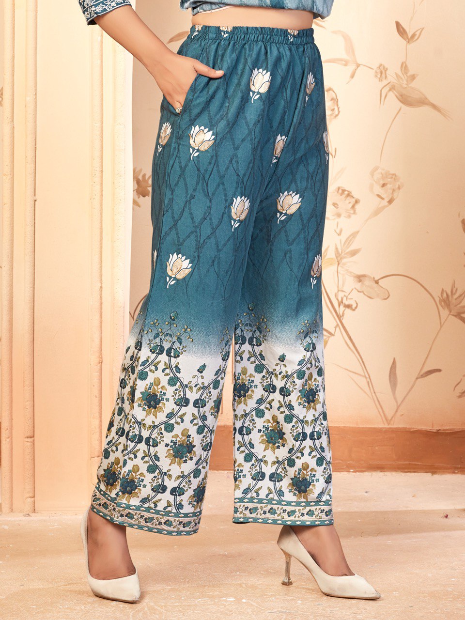 Blue Viscose Rayon Kurti with Pyjamas